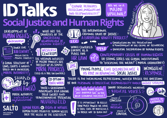 READ HERE: ID Talks Social Justice And Youth Work Article by Silvia Volpi + graphic recordings by Olalla Gonzalez