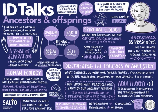 READ HERE: ID Talks Social Justice And Youth Work Article by Silvia Volpi + graphic recordings by Olalla Gonzalez